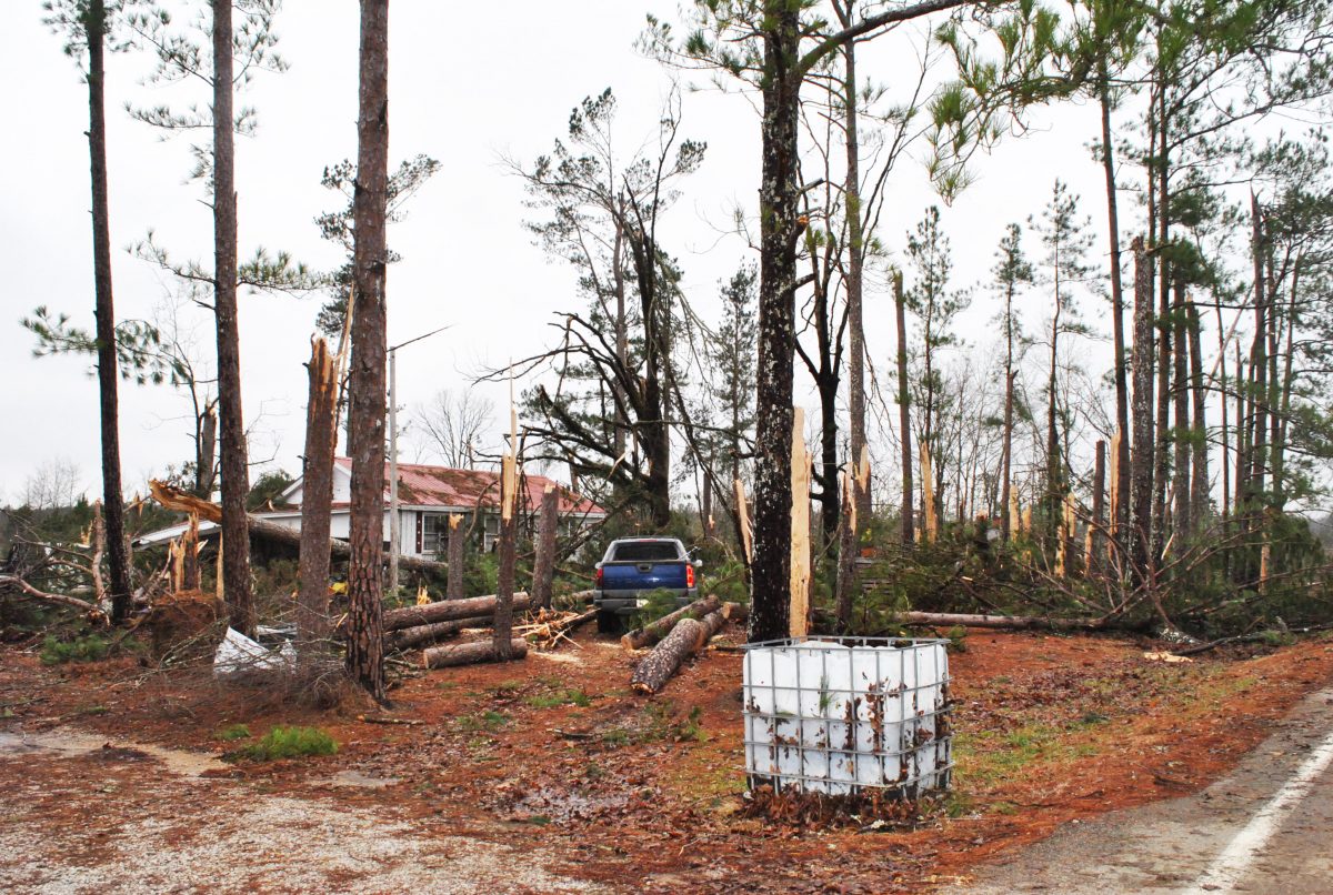 Volunteers from the community and from the Union County Baptist Association were putting tarps on damaged roofs and helping with cleanup. Harmony Baptist Pastor Gary Yates and church members also set up their Soup for the Soul mobile food kitchen at the Alpine Volunteer Fire Department to feed victims and volunteers. The fire department was serving as a command post.